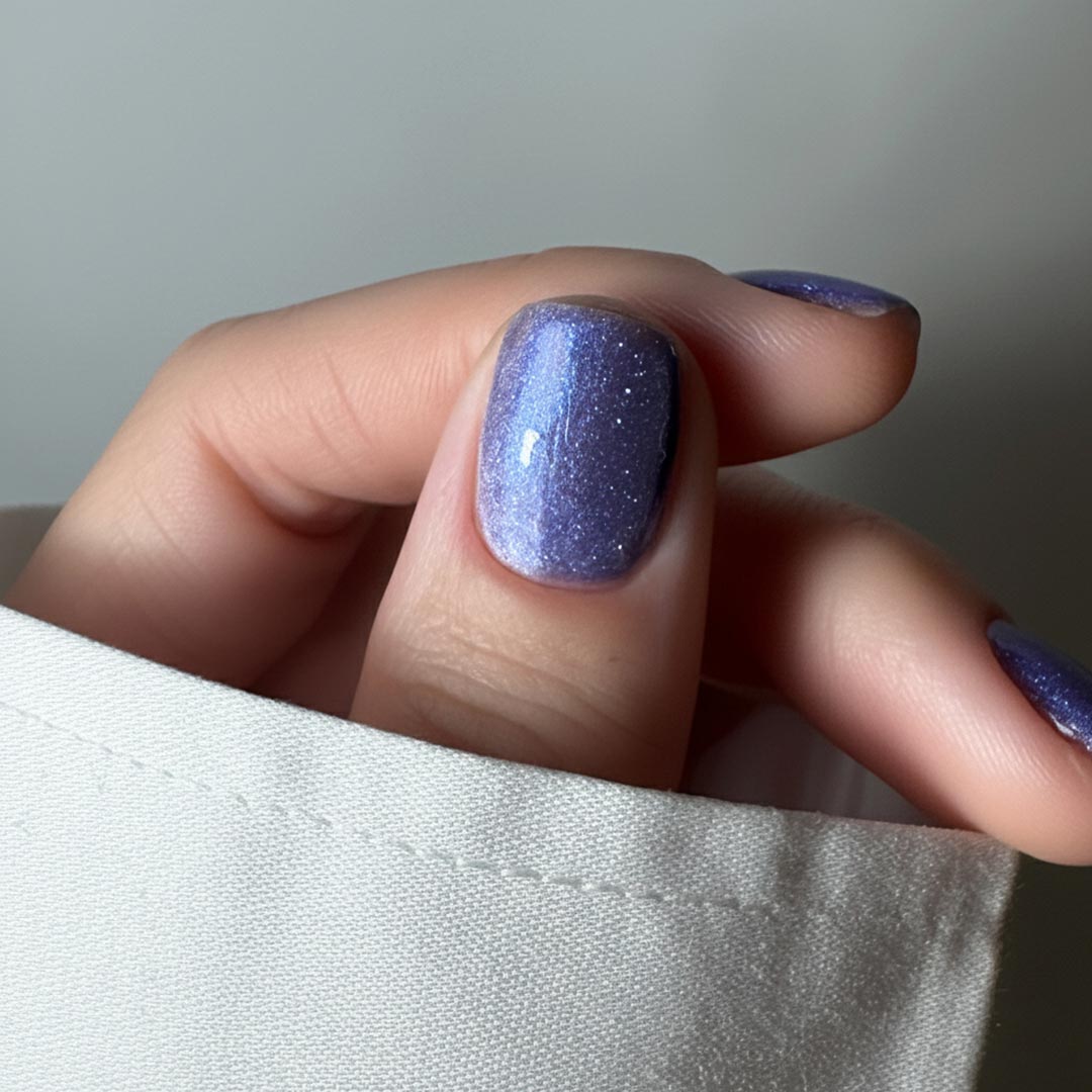 A captivating blue-purple toned cat eye gel that shifts and shimmers like the ocean. This magnetic shade creates a mesmerising, multi-dimensional effect that moves with the light.