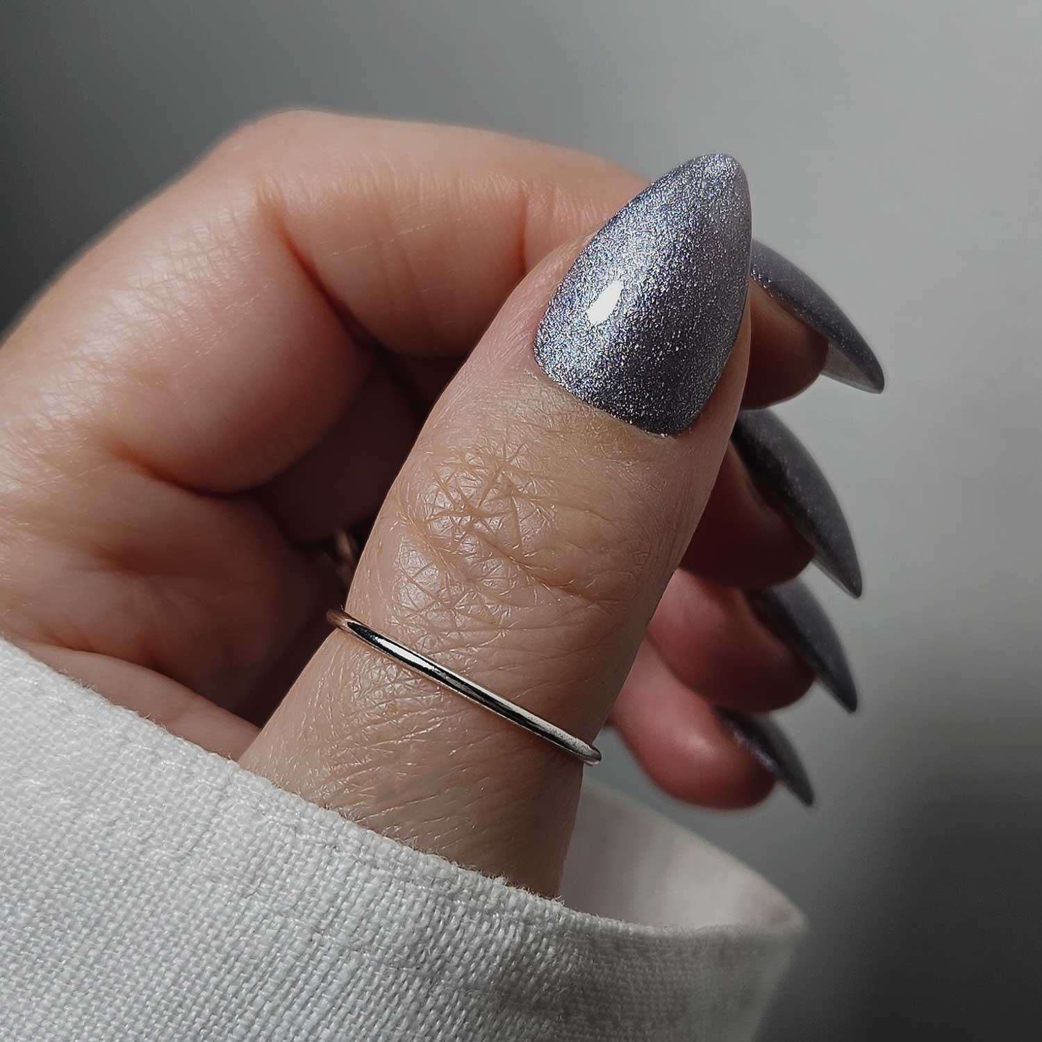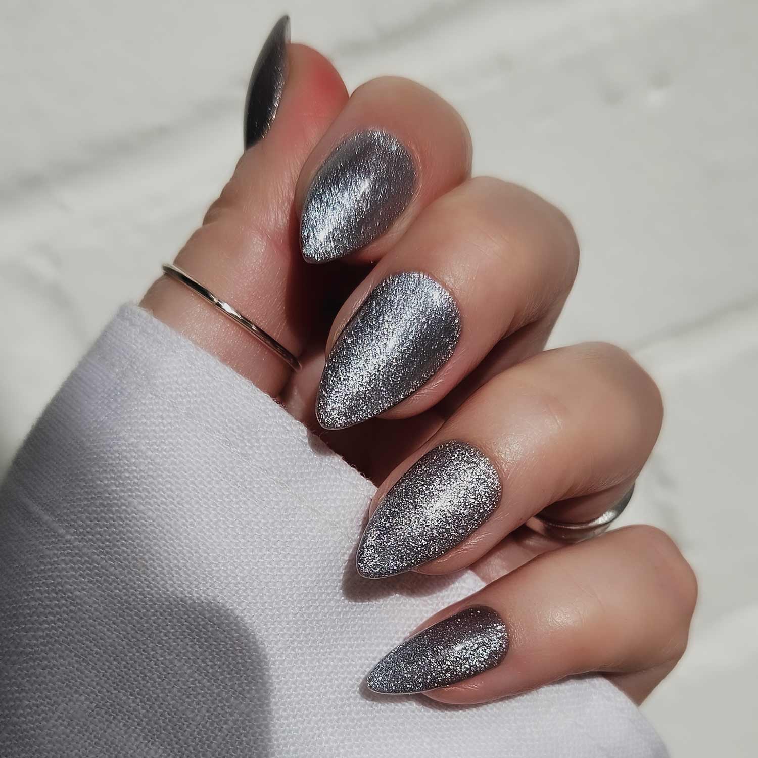 - Cat eye gel requires magnet to move pigment around the nail to create captivating, shimmering designs before curing