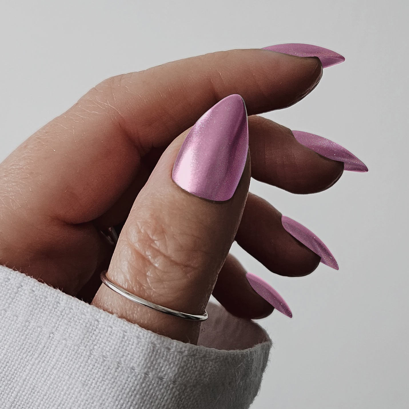 Spaced Out is demure lilac chrome from the farthest reaches of space. Burnish on top of Mood or Femme for an interga(lilac)tic Fembot look.