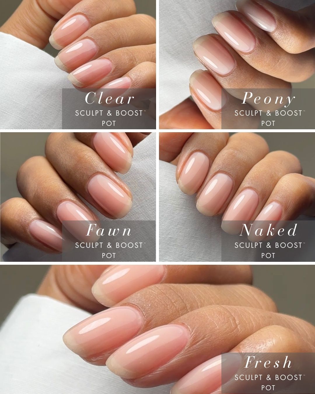 Please note: Because of the differing base formulas and viscosities of SCULPT & BOOST, BUILD & BOOST and our gel colour, Peony may appear slightly different in shade when compared side by side.