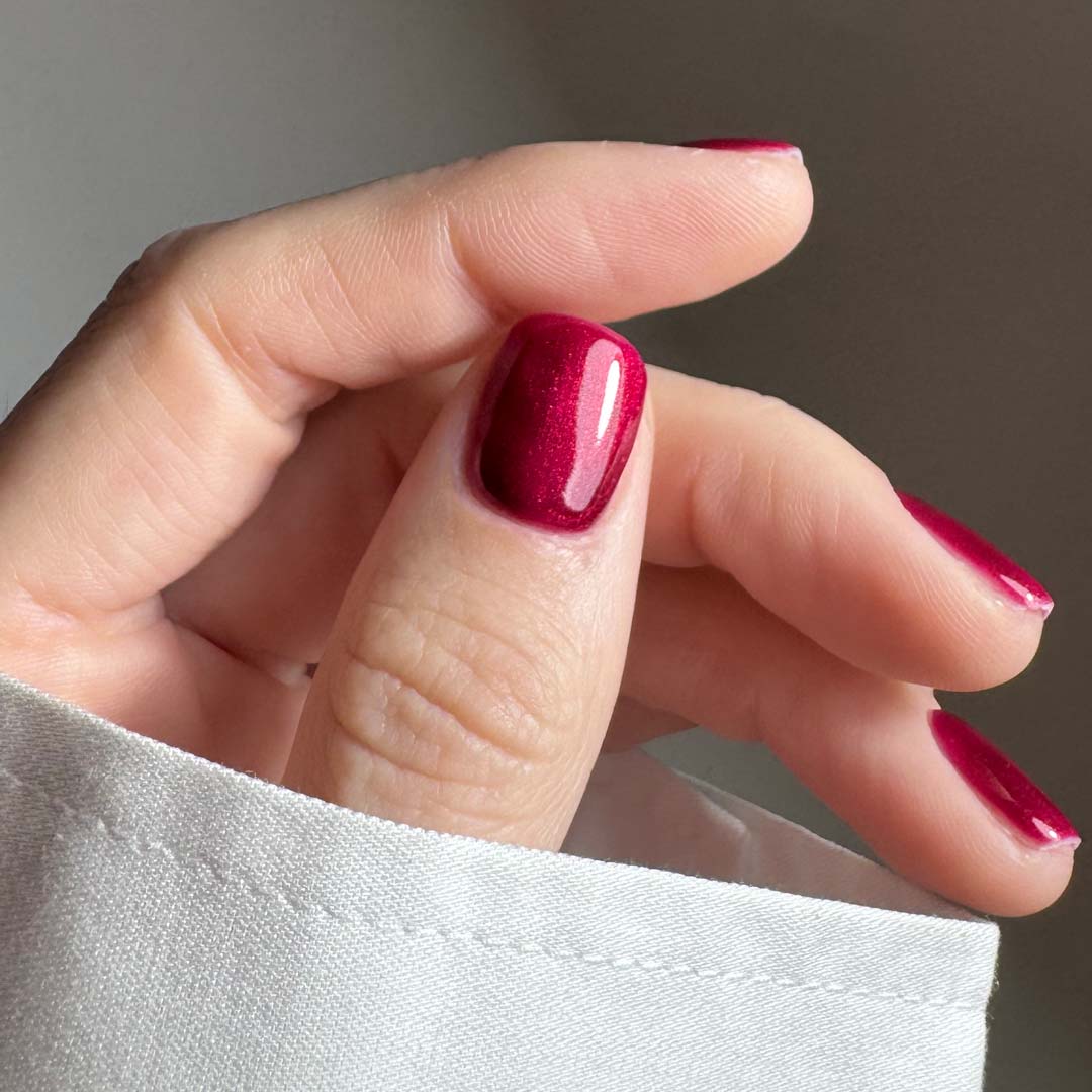Perfect for the season of sophistication, it’s a sultry, statement-making red that glows with depth under every light — bold enough for centre stage, yet effortlessly wearable.